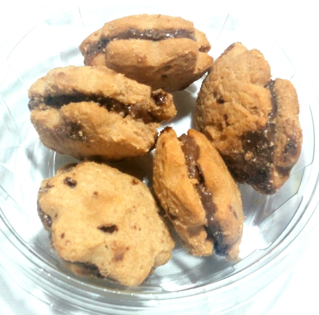 Biscoito crocante de ovomaltine com recheio de creme de avelã